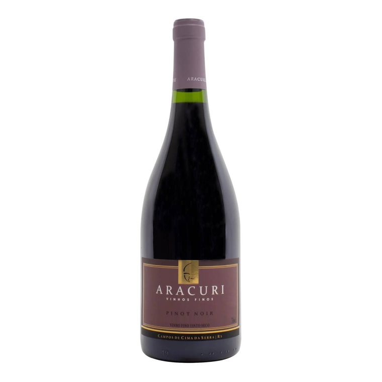Vinho Tinto da vinícola Aracuri composto 100% por uvas Pinot Noir da safra 2023, provenientes de Campos de Cima da Serra/RS. Vinho aromático, complexo, equilibrado e de acidez vibrante.