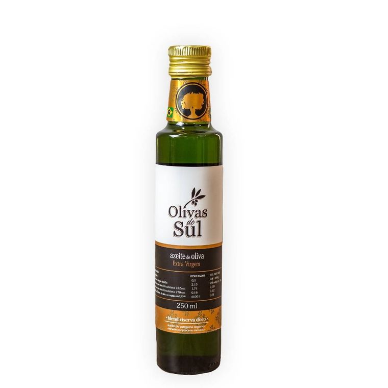 O azeite olivas do sul riserva doro 250ml é um blend de frutos perfeitos colhidos no início da safra. Aroma frutado amargor e picancia equilibrados.