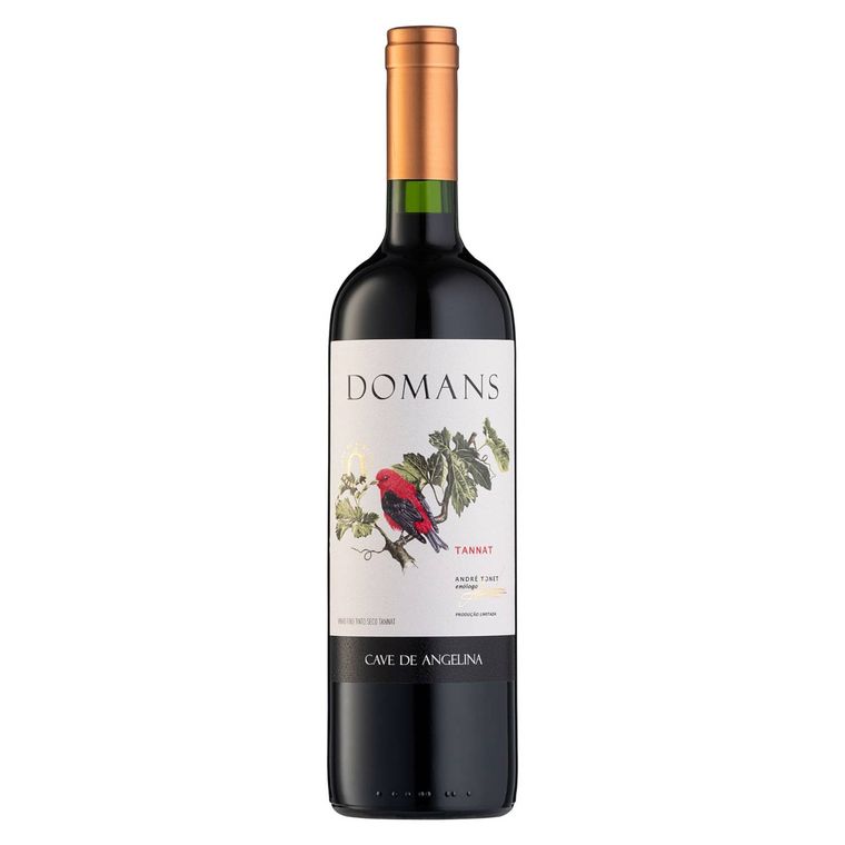 Vinho Tinto Domans da vinícola Cave de Angelina composto 100% por uvas Tannat da safra 2023. Possui 6 meses de passagem por barricas de carvalho francês e americano. É um vinho aromático, persistente, de taninos maduros e acidez equilibrada.
