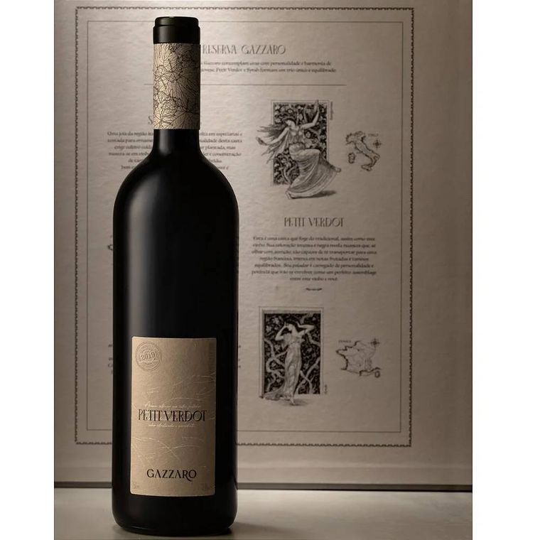 Vinho Tinto da Vinícola Gazzaro composto 100% por uvas Petit Verdot da safra 2019. Maturou 12 meses em barricas de carvalho americano. De estilo europeu, propõe uma experiência multissensorial única com grande potencial de guarda. A garrafa traz uma pequena carta em seu pescoço que conta sobre a origem e as características do vinho, evidenciando as notas e detalhes que o tornam único.