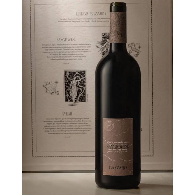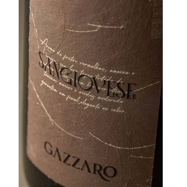 Vinho Tinto da Vinícola Gazzaro composto 100% por uvas Sangiovese da safra 2019. Maturou 24 meses em barricas de carvalho americano. De estilo europeu, propõe uma experiência multissensorial única com grande potencial de guarda. A garrafa traz uma pequena carta em seu pescoço que conta sobre a origem e as características do vinho, evidenciando as notas e detalhes que o tornam único.