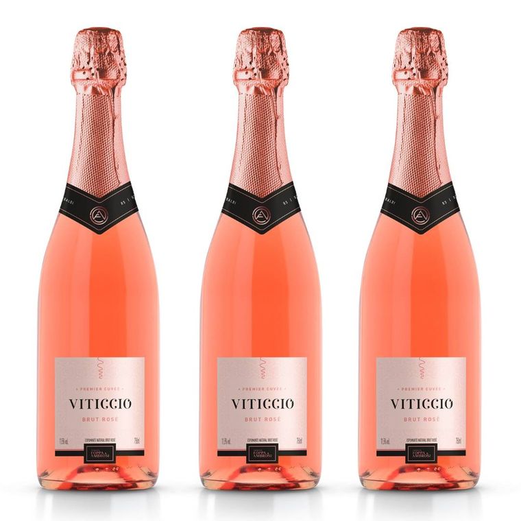 Kit contendo 3x unidades do Espumante Viticcio Premier Cuvée Brut Rosé é um vinho brasileiro produzido na região da Serra Gaúcha pela Vinícola Tenuta Foppa & Ambrosi. É um espumante cremoso, volumoso e elegante.