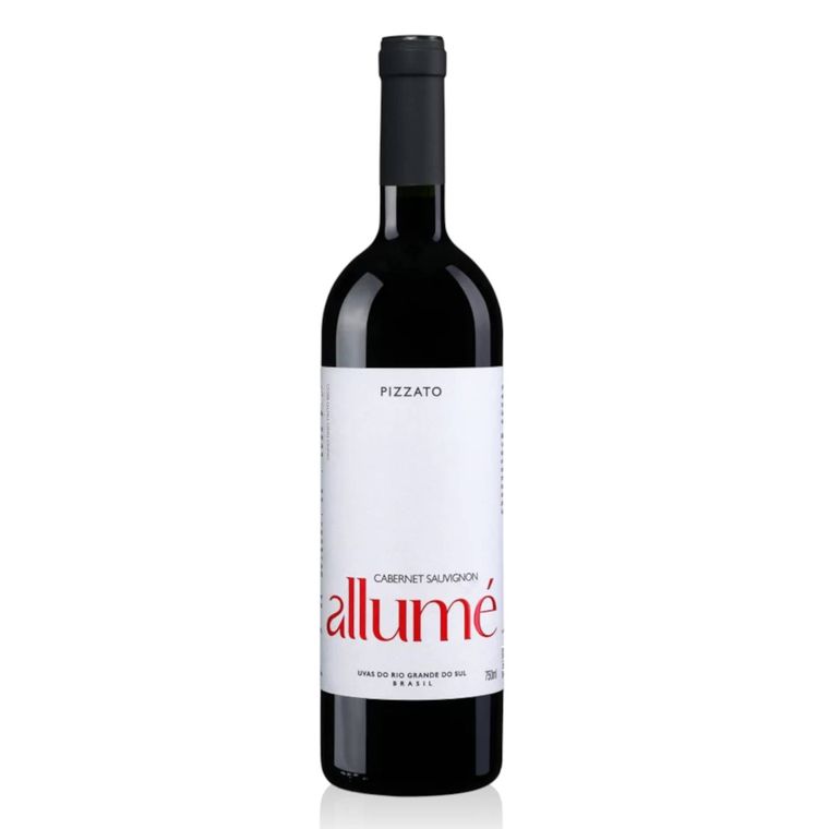 Vinho Tinto Allumé da vinícola Pizzato composto 100% por uvas Cabernet Sauvignon da safra 2021. Possui breve passagem por barricas de carvalho de segunda uso ou mais. É um vinho encorpado, marcante nos taninos mas com equilíbrio e frescor.
