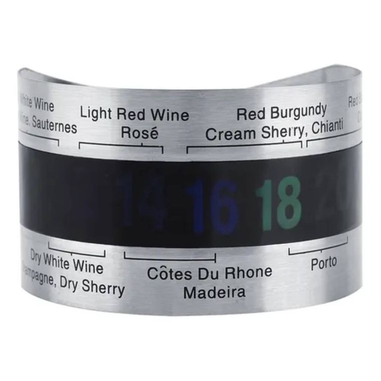 Descubra se seu vinho já está na temperatura ideal para ser saboreado com a ajuda deste termômetro. Apresenta tabela indicativa de temperatura ideal para cada tipo de vinho.